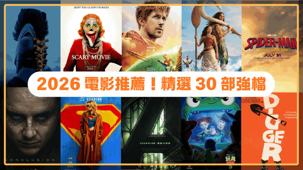 今年電影強檔雲集,幾乎每個月都有精彩大作,這次分享 2026 年電影推薦精彩片單!不論你喜歡奇幻史詩、黑色喜劇、懸疑驚悚、電玩 / 漫畫改編,或是年度壓軸史詩鉅作,本次電影推薦懶人包一次幫你整理好,趕快收藏起來,讓電影陪你度過每一個愉快週末,一路精采到年底!